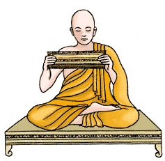 This Thai monk is studying the Dharma from a ‘leaf book’.