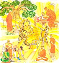 Explanation: One day a group of lay disciples who only kept one precept each, fell into dispute, each of them saying, “It’s a hard thing I have to do; it’s a hard precept I have to keep. Going to the Buddha to settle the dispute, the Buddha listened to what they had to say, and then, without naming a single precept as of lesser importance, said, “All precepts are hard to keep”.