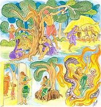 Explanation: Now, your allotted life span is spent. You have reached the presence of the king of death (Yama). You do not have a resting place in between. You do not seem to have provisions for the road either.