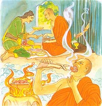 Explanation: The blade of the kusa grass, if held wrongly, will cut one’s hand. In the same way, if one were to handle monastic life in the wrong way – against the grain – it will pull the person down into hell.
