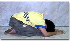 One manner of prostration as observed in a Theravada temple (e.g. temples of Sri Lankan, Thai, Burmese traditions)